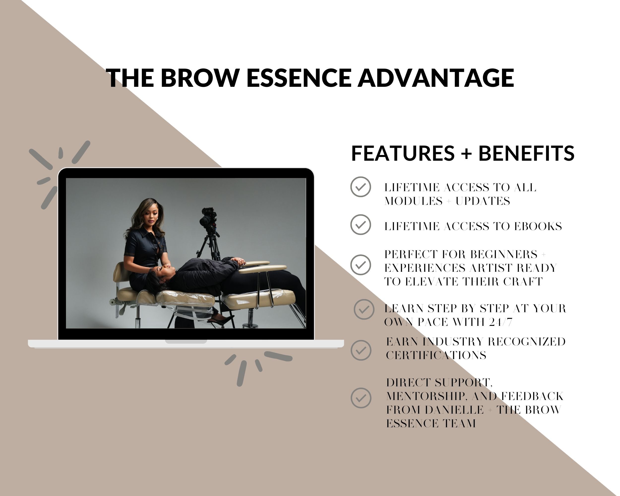 You’ll learn step-by-step techniques, client customization, advanced shaping and symmetry strategies, and Danielle’s proven Brow Essence Method, all online, at your own pace, with lifetime access.